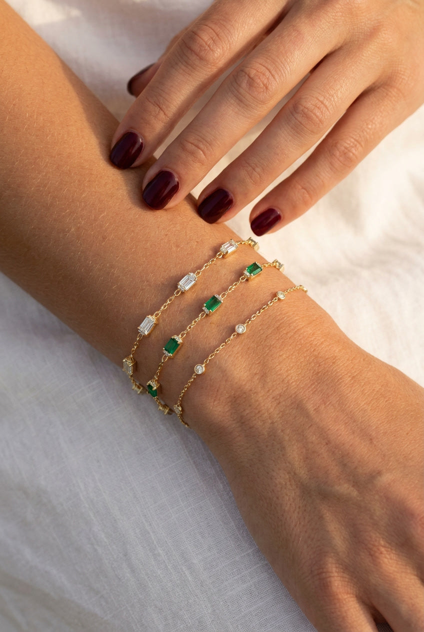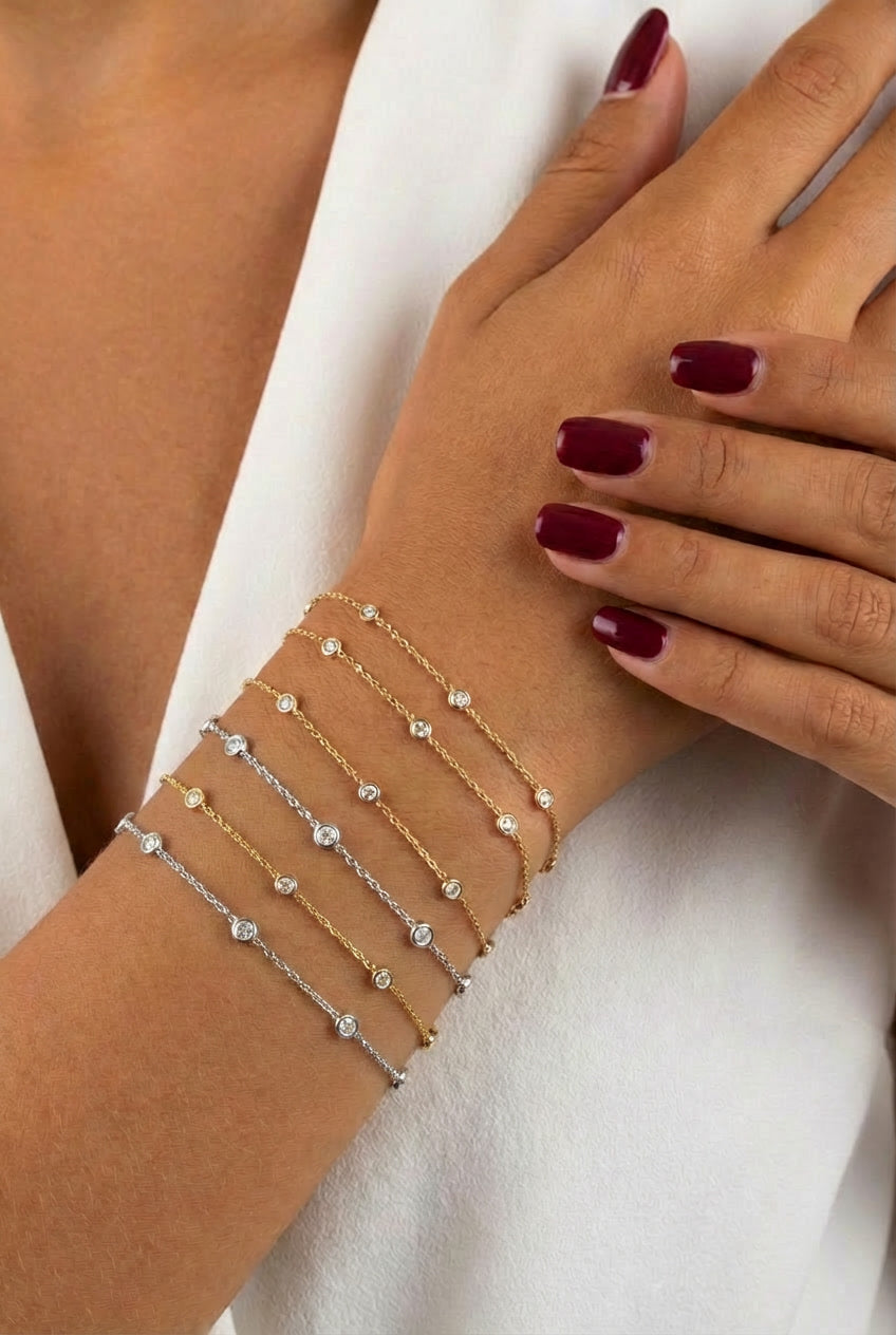 Dots Bezel Diamond Bracelet - 14K Gold