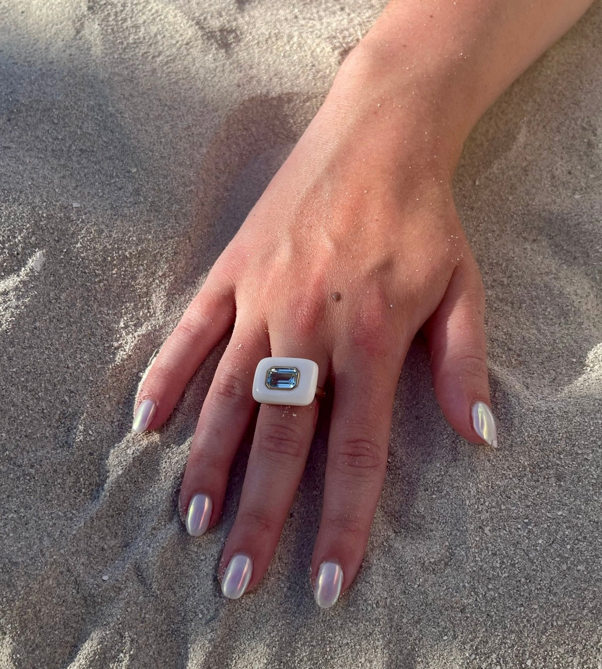 Make a bold move with this stunning Blue Topaz White Agate Ring, where modern elegance meets eye-catching style. Sleek, chic, and unapologetically statement-making, this ring transforms any outfit into something unforgettable. Set in 18K solid gold, this is a piece you will want to add to your collection.