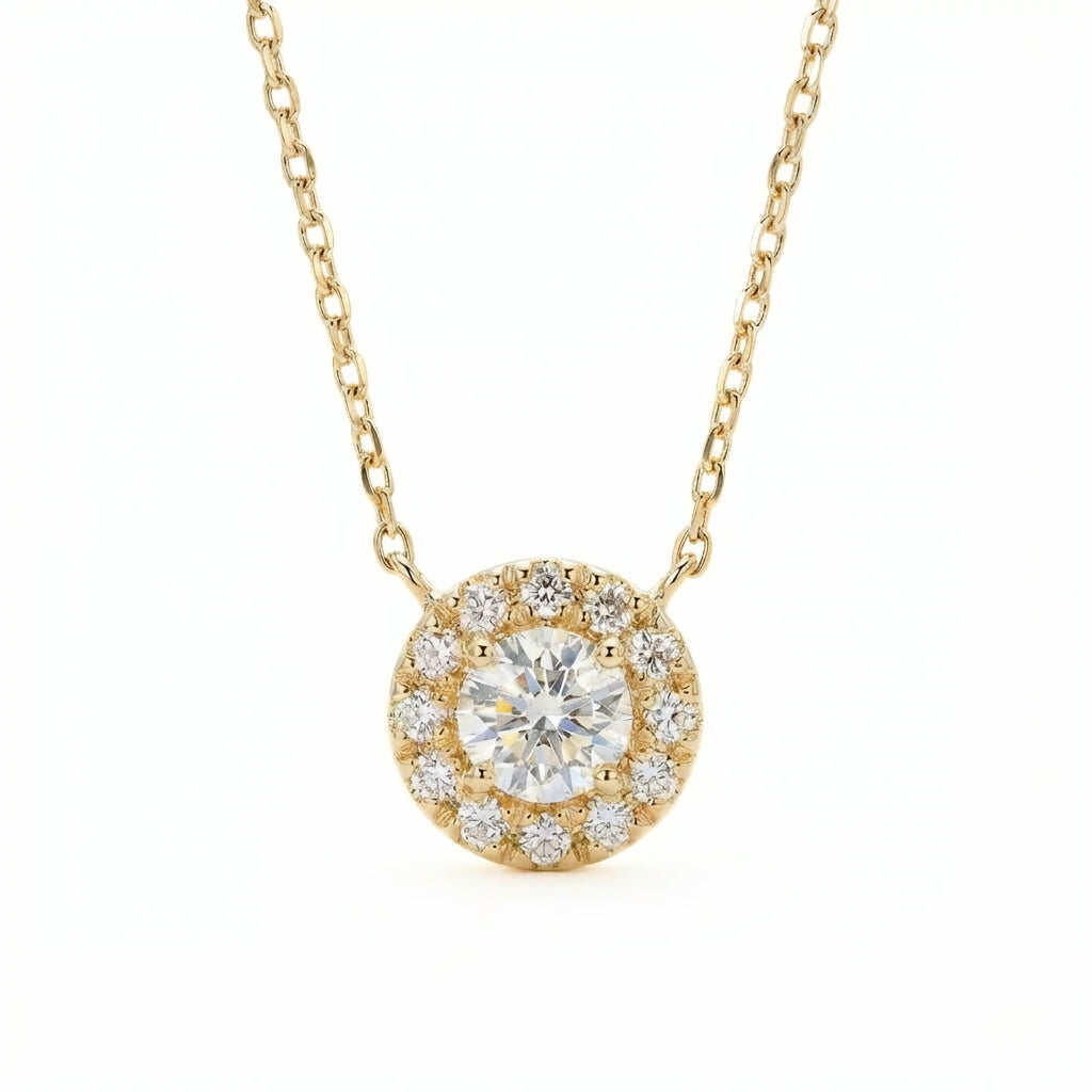 Halo Round Diamond Necklace - 14K Gold